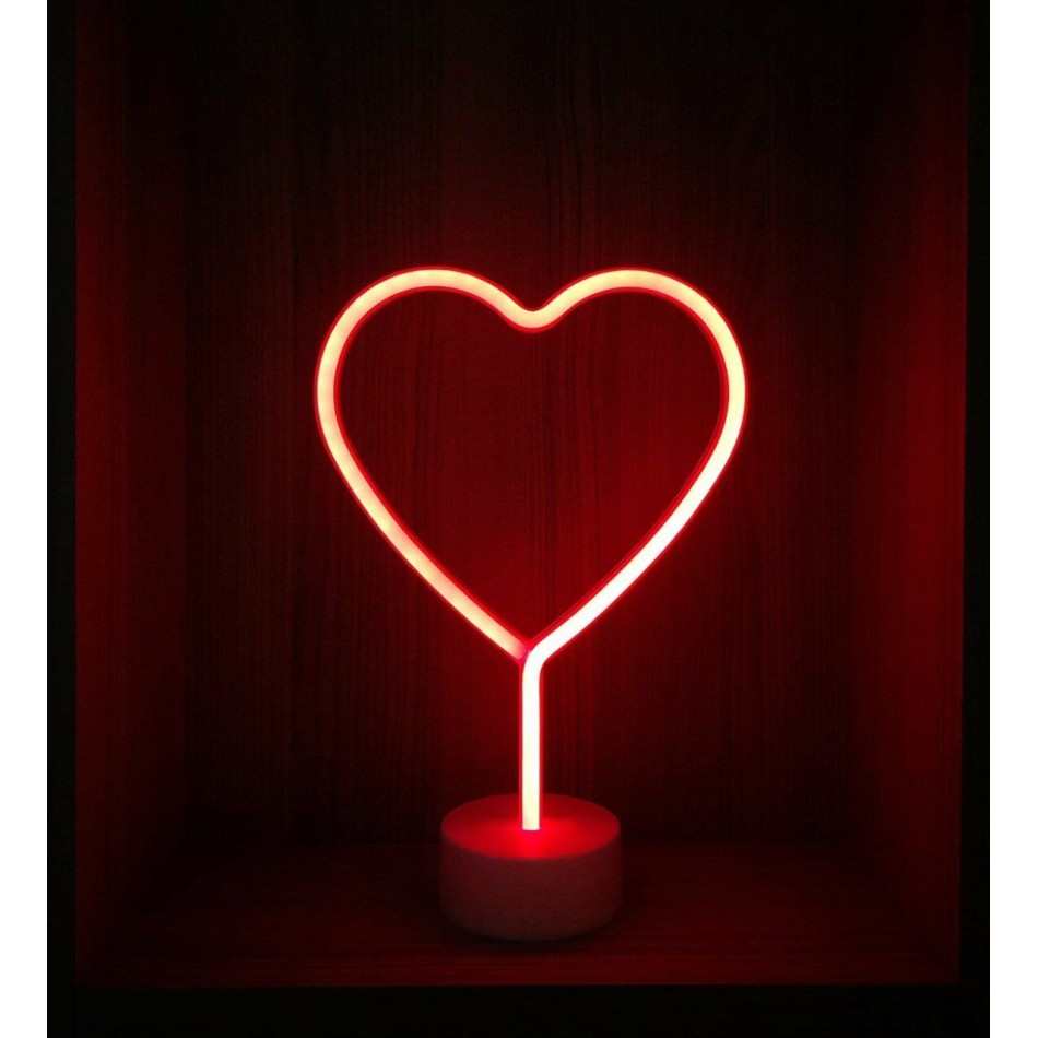 Neon Işıklı Kalp Masa Gece Lambası PİL+USB